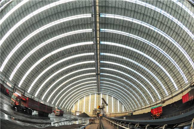 堆场料场封闭式主体结构为新型的钢高邮网架结构,维修结构为高邮钢结构高邮不锈钢板和纤维增强塑料灯具,其外形以高邮网架式和平板为主,连接柱高邮施工自由,设置喷雾自动喷水系统,从而可以实现棚内所有物料的覆盖,减少物料在运输过程中的损耗,起到防尘的作用,减少工厂关闭后的二氧化硫排放量,50mg/m3颗粒排放量小于10mg/m3,非常适合低能耗。低闭库自动感应反应对库存轮胎进行清洁,确保轮胎不受道路污染;封闭的储存区可从源头控制粉尘污染,控制无序排放。
